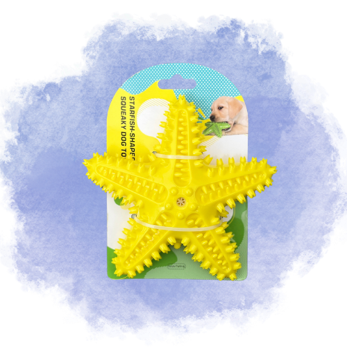 Add a splash of fun to playtime with this durable starfish chew toy! Built to last, it features a hidden squeaker to keep your pup engaged and a textured surface that helps support dental hygiene with every chew.